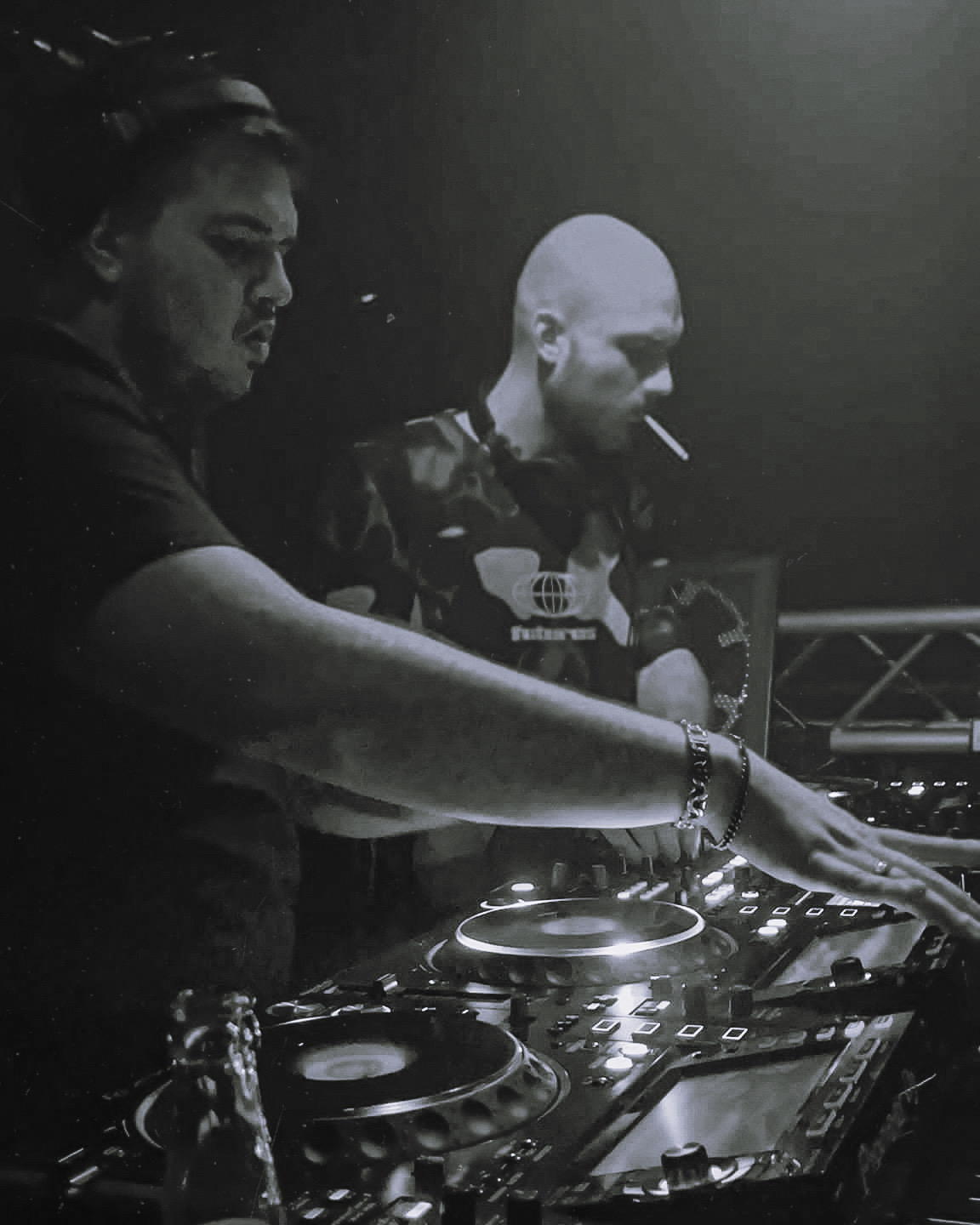 THEY'RE BRINGING A MODERN MIX OF HARD TECHNO AND INDUSTRIAL WHICH CONSISTS MOSTLY OF HEAVY RUMBLE KICKS. THROUGH THEIR OWN PRODUCTIONS, THE TWO ARE CREATING A RIDGE BETWEEN DARKNESS AND A GOD RAVE ATMOSPHERE. THE BPM RANGE IS BETWEEN 155-175 BPM ACCORDING TO THE TIME